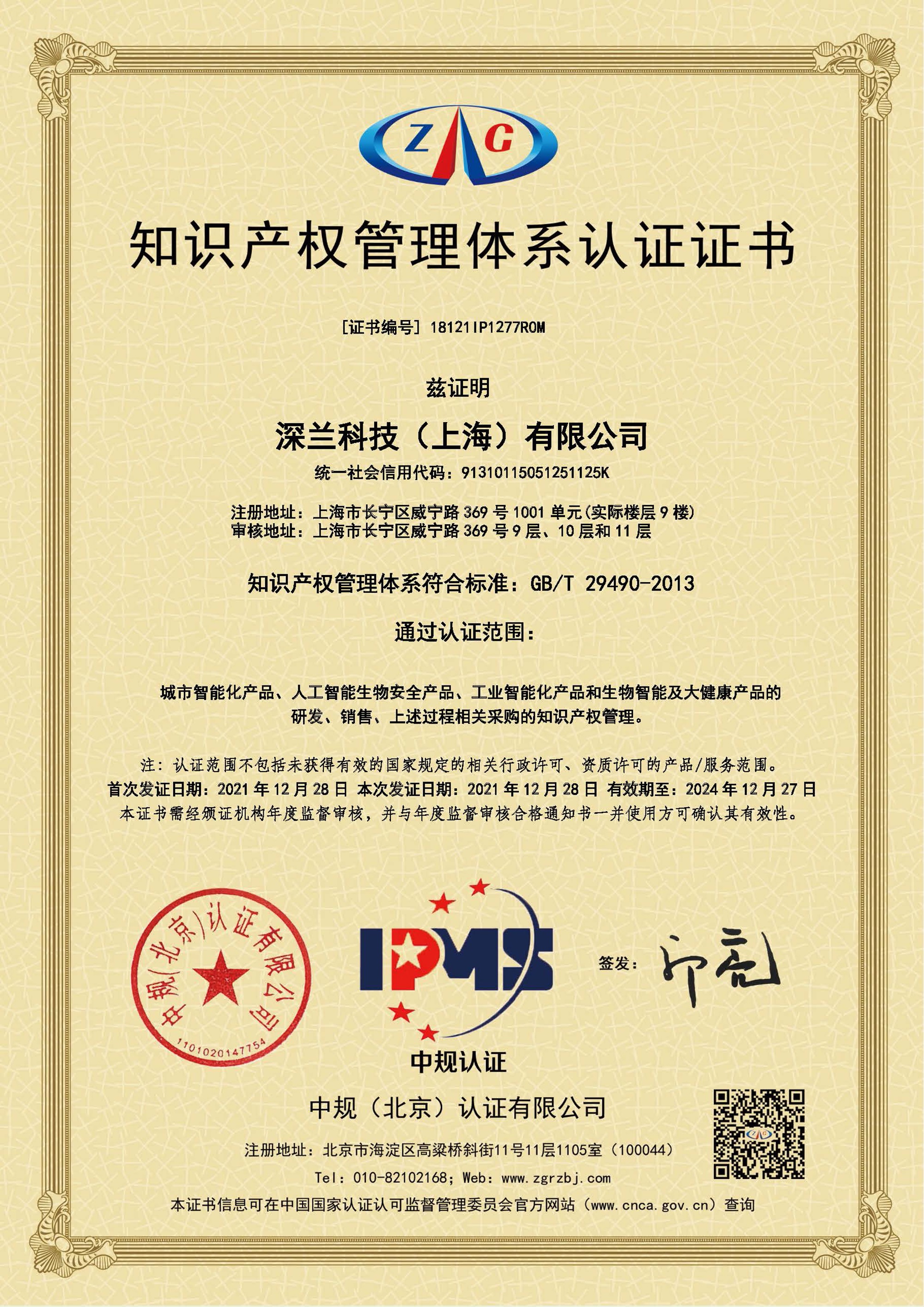 2021知识产权管理体系认证证书