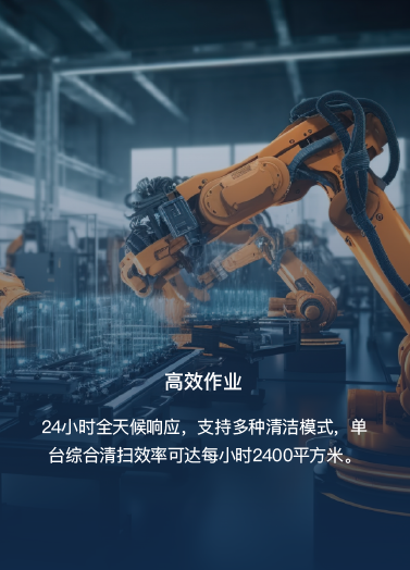 24小时全天候响应,支持多种清洁模式,单台综合清扫效率可达每小时2400平方米。