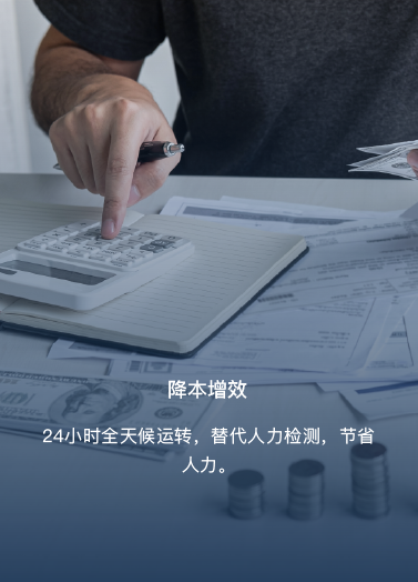 24小时全天候运转,替代人力检测,节省人力。