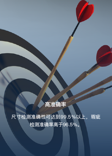 尺寸检测准确性可达到99.5%以上,瑕疵检测准确率高于96.5%。