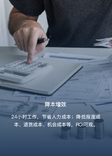 24小时工作,节省人力成本;降低报废成本、退货成本、机会成本等,ROI可观。