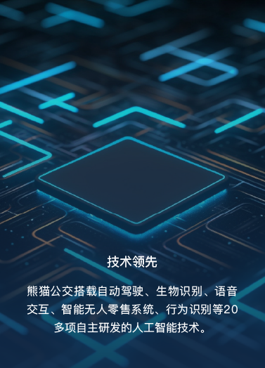 熊猫公交搭载自动驾驶、生物识别、语音交互、智能无人零售系统、行为识别等20多项自主研发的人工智能技术。